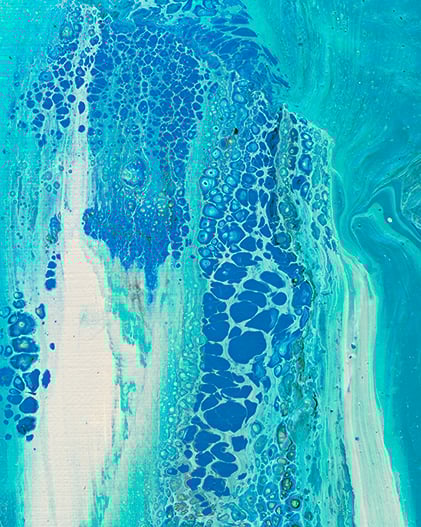Created using a combination of paint layering via paint pouring, blow-drying and dripping together with digital manipulation.