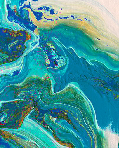 Created using a combination of paint layering via paint pouring, blow-drying and dripping together with digital manipulation.